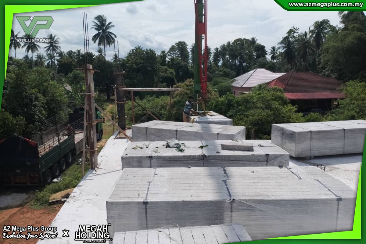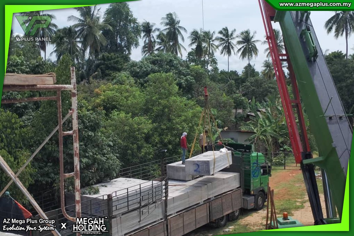 Alhamdulillah, Completed Delivery Completed delivery of IBS V-PLUS PANEL for house construction project. For this time, our team made a delivery at the Besut site, Terengganu, for the contractor who is carrying out a construction project of a 2-story house.
