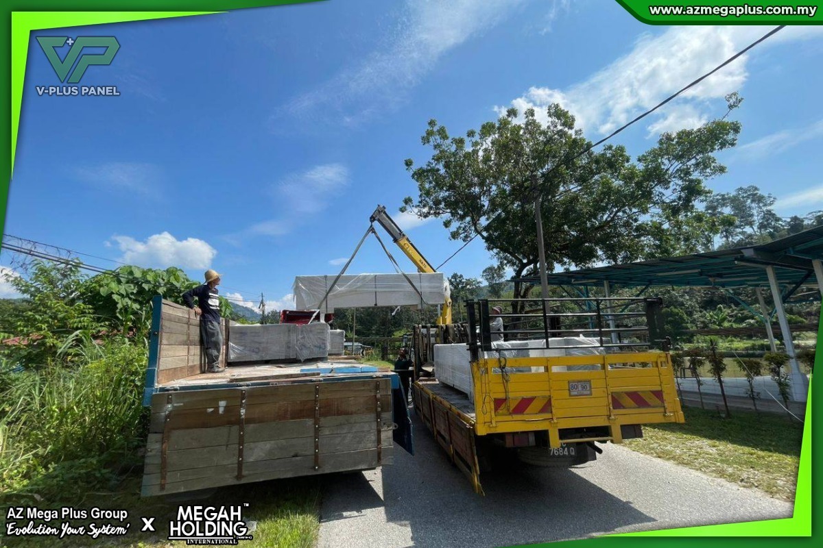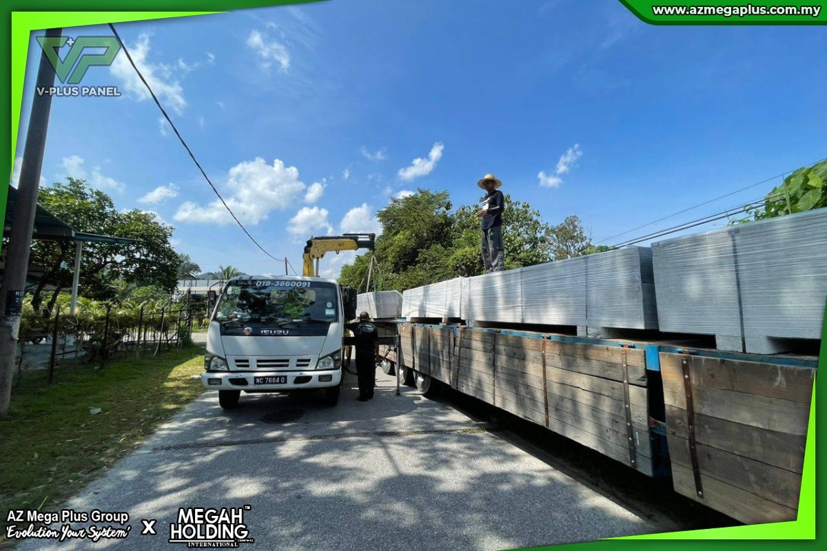 Alhamdulillah, the AZ MEGA PLUS team completed the delivery of IBS V-PLUS PANEL for the house construction project, which is the second project of the contractor using IBS V-PLUS PANEL.