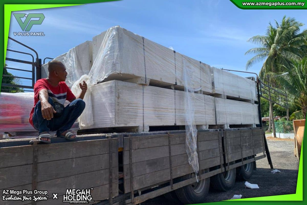 Our Product V-PLUS panel was delivered at Tumpat, Kelantan. This project is a self-built house by Mr. Mazlan using IBS (Industrialized Building System).