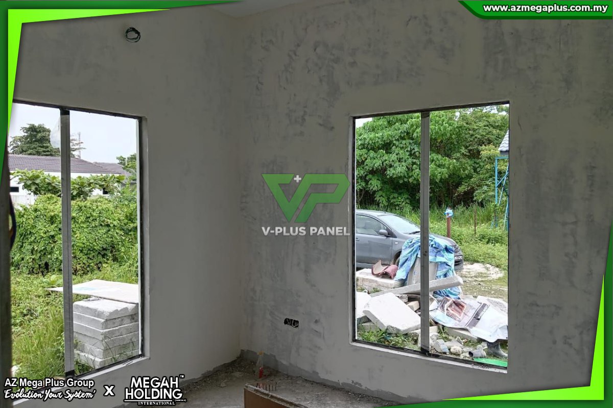 This project is his second project using IBS V-PLUS PANEL technology in house construction. Mr. Solihin has once again used IBS V-PLUS PANEL in construction under his supervision because he is confident in the quality of IBS V-PLUS PANEL, which is durable and strong. In addition, IBS V-PLUS PANEL does not require many craftsmen on site because it is lighter and easier to install with guidance from the Az Mega Plus Technical Team led by Mr. Bad.