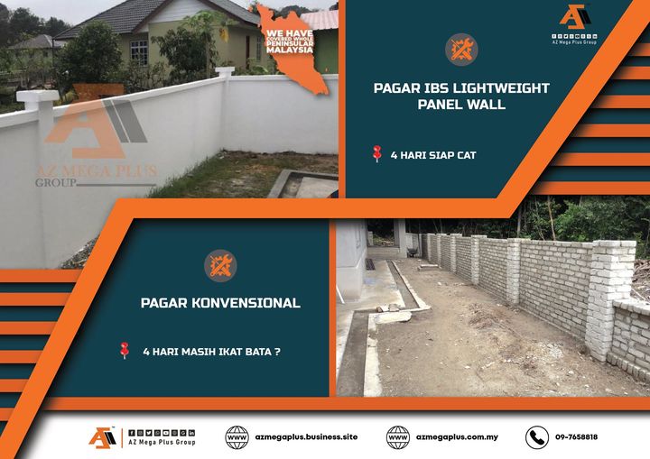 Menjimatkan Kos, Masa dan Tenaga Kerja Yang pasti bila menggunakan kaedah IBS hasil nya nanti pasti lebih cantik & kemas dan tersusun tak senget. Untuk sebarang pertanyaan maklumat IBS MeGGa PANELWALL yang lebih jelas,cepat & pantas boleh ke platform kami :