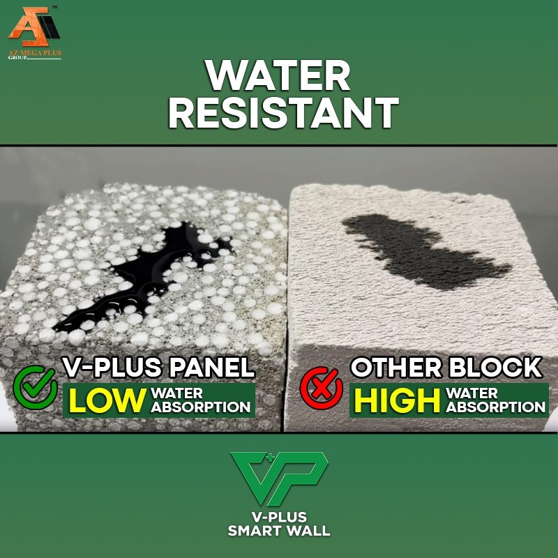 IBS V-PLUS Smart Wall dihasilkan menggunakan teknologi Autoclaved Lightweight Concrete (ALC) yang mempunyai struktur dalaman lebih padat dan seragam. Ciri ini membolehkan air sukar meresap ke dalam dinding berbanding kaedah binaan konvensional. Permukaan panel yang lebih rata dan kemas juga membantu meminimumkan rekahan halus yang sering menjadi punca kebocoran dari masa ke masa.