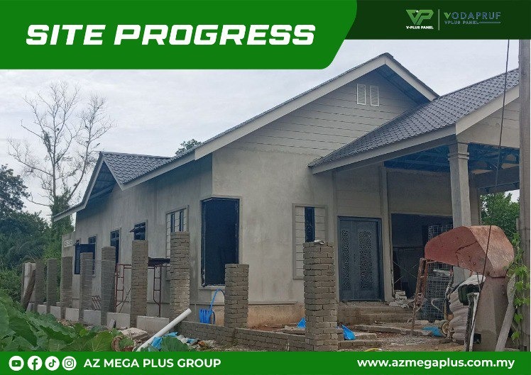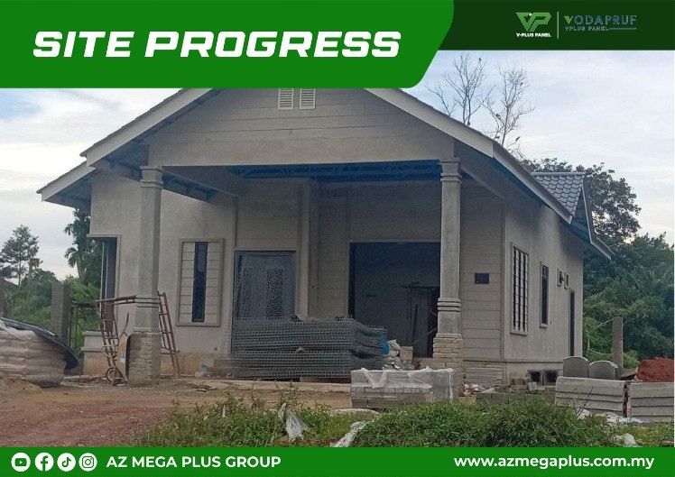 The construction of a single-storey bungalow in Kuala Terengganu is progressing smoothly with the use of the IBS V-PLUS Smart Wall system as the main wall construction method. This choice reflects the commitment of both the contractor and the homeowner to achieving a stronger, more modern, and faster-built home.
