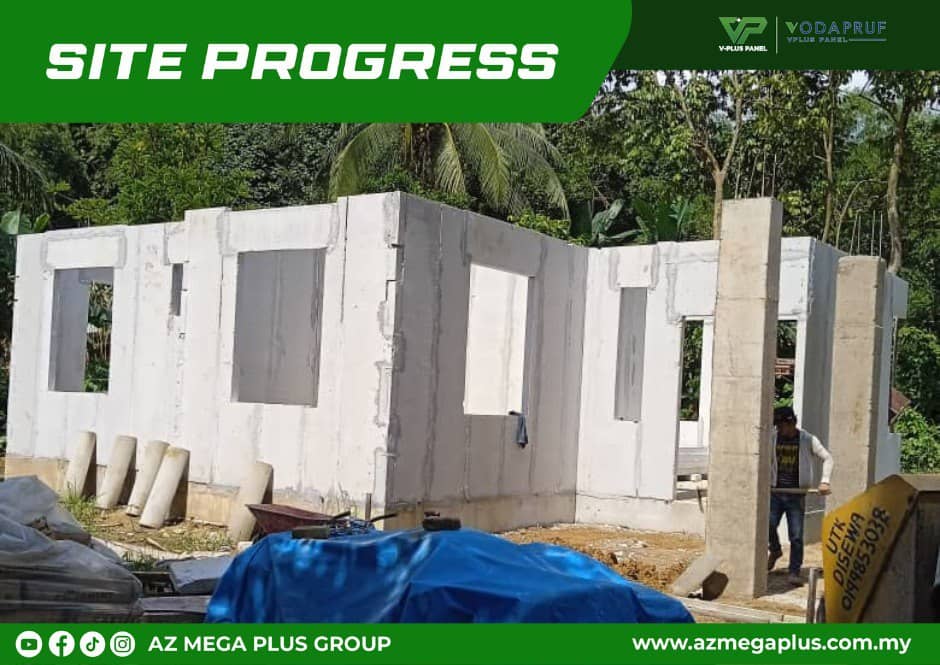Alhamdulillah, projek pertama kontraktor yang menggunakan IBS V-PLUS PANEL di Salor, Pasir Mas berjalan dengan lancar! Rumah berkeluasan 840 kaki persegi, lengkap dengan 3 bilik dan 2 bilik air, kini telah selesai pemasangan atap.