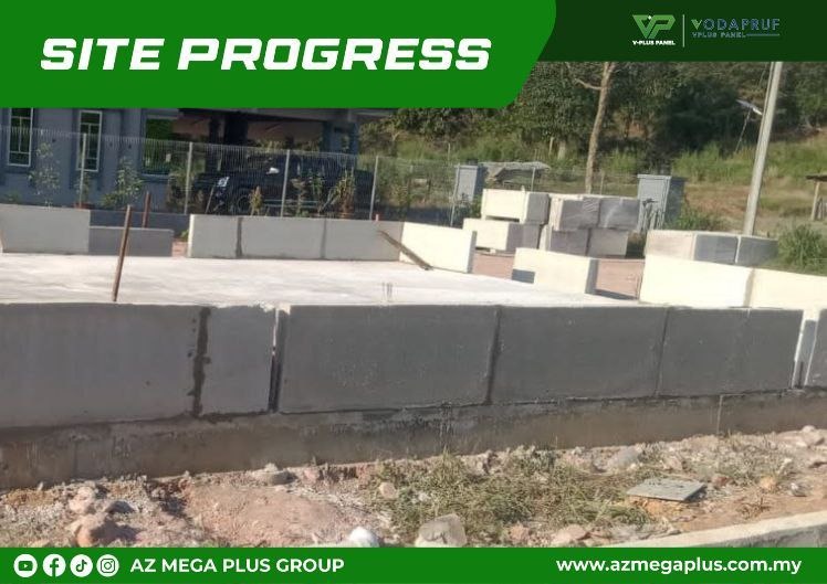 The construction project in Simpang Renggam, Johor has used the IBS V-Plus Big Block system to speed up the construction work. This system was chosen because it is easy to install and suitable for projects that require a neat result in a short time. The IBS V-Plus Big Block has a large size of 610mm in height, 1500mm in width and thickness ranging from 100mm to 200mm. In addition, the surface only requires a coat scheme of at least 5mm to get a smooth finish.