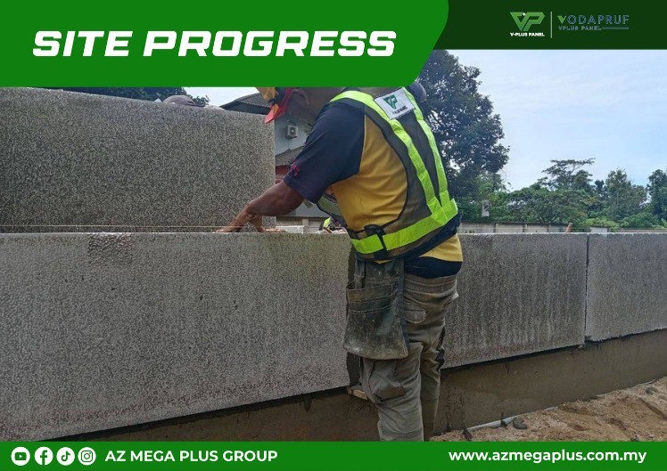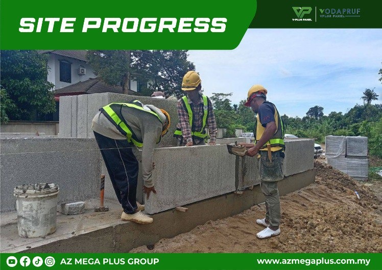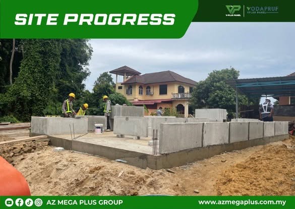 The house construction project at Kampung Paya Bemban, Kota Bharu, Kelantan is currently underway using the IBS V-PLUS Big Block system, a modern construction technology that is rapidly gaining popularity among contractors across Malaysia.