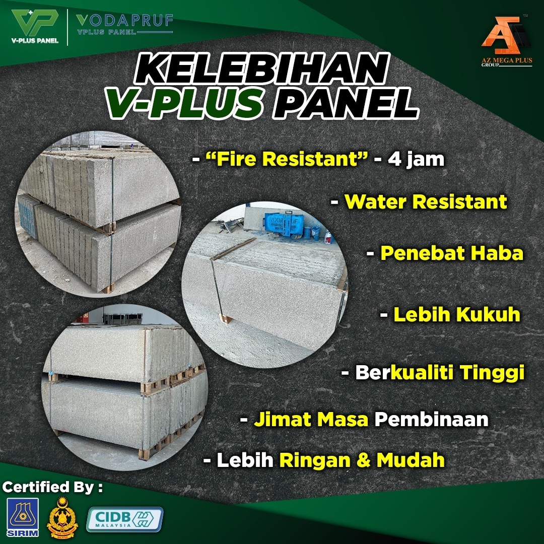 Dari aspek kegunaan, IBS V-PLUS Panel dan Big Block sangat sesuai untuk projek bina rumah, kerja renovasi dan pembinaan pagar kerana ia ringan tetapi tetap kukuh, mempunyai ciri penebat haba (heat insulation) serta ketahanan air (water resistant). Keistimewaan ini bukan sahaja memberikan nilai tambah kepada binaan, malah membantu kontraktor menjimatkan kos tenaga kerja serta mempercepatkan tempoh pembinaan. Tambahan pula, produk ini telah memperoleh pengiktirafan rasmi melalui sijil kelulusan BOMBA, SIRIM dan CIDB, membuktikan kualiti serta keselamatan IBS V-PLUS menepati piawaian industri.