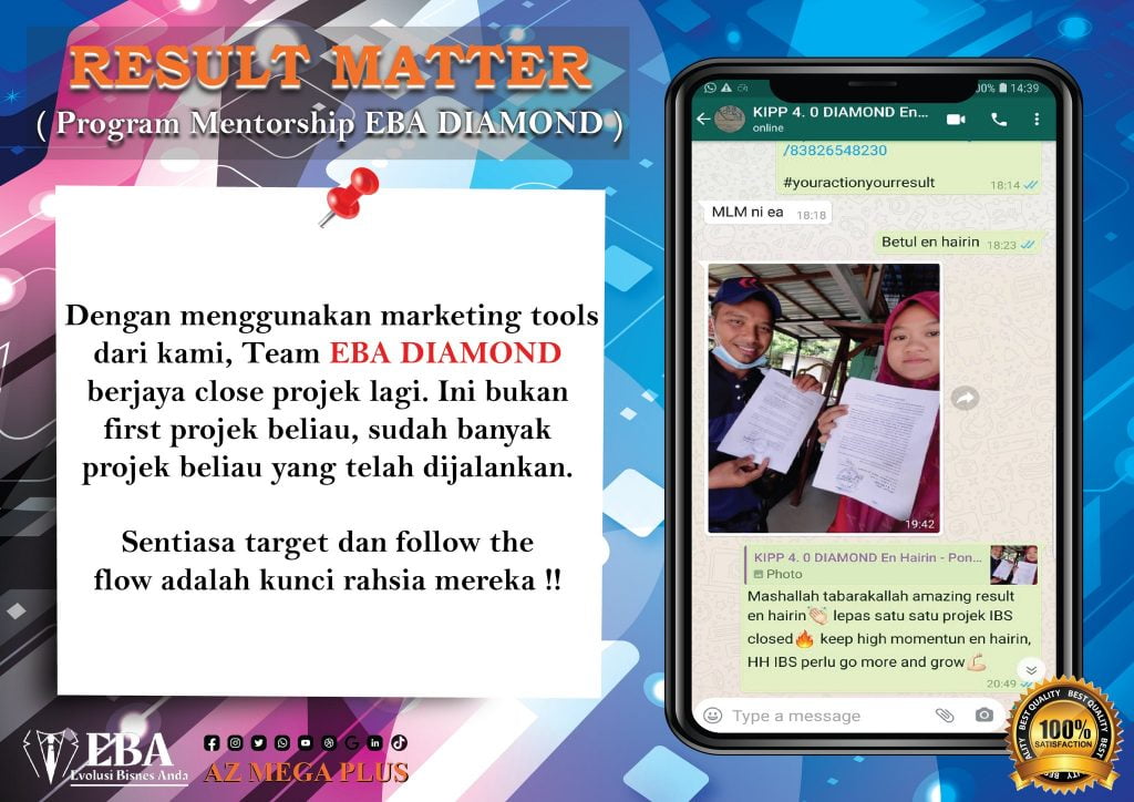 Fuhhhh, rancak sangat ni customer team EBA DIAMOND kami ni, selepas satu persatu close new projek. Meh admin nak share result latest EBA Diamond yang berjaya sign projek terbaru dengan menggunakan marketing tools yang diajar oleh team kami. Pada awalnya, EBA Diamond ini hanya buat projek konvensional saja, namun setelah join Team AZ Megga, beliau dapat banyak projek IBS.