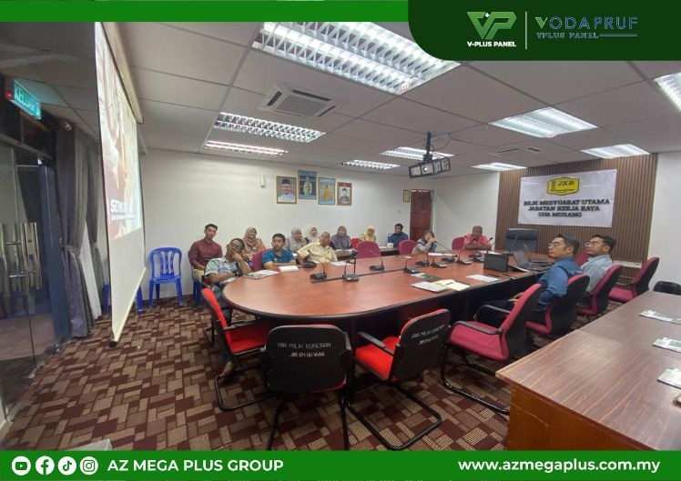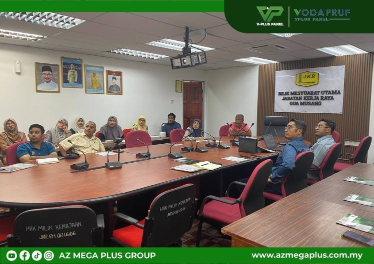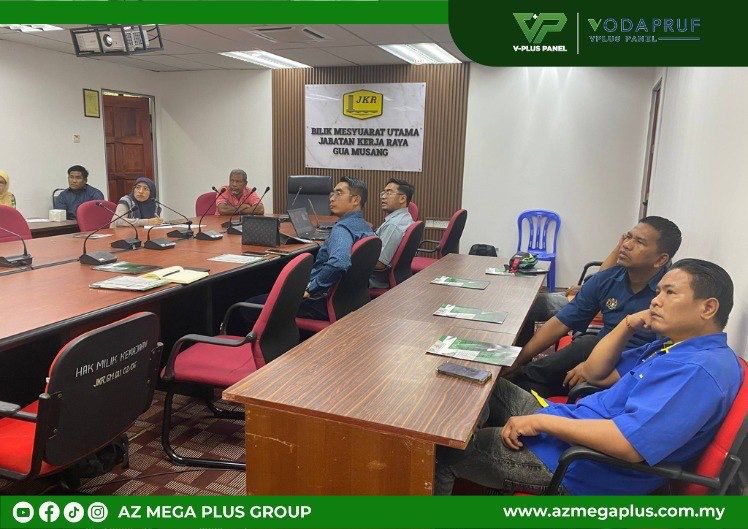 On 22 September 2025, the team from AZ Mega Plus Group Sdn Bhd conducted a briefing and product presentation on the IBS V-Plus Smart Wall at Jabatan Kerja Raya (JKR) Daerah Gua Musang, Kelantan. The session aimed to provide JKR with exposure to innovative technology in modern construction systems that are gaining increasing traction in Malaysia.
